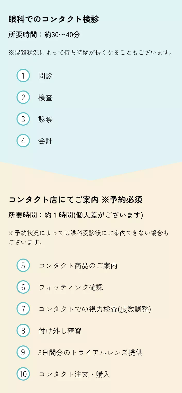 上記の理由から、併設の幸地コンタクト・眼鏡店にて、コンタクト合わせ、取り外し練習、購入をお願いしています。 患者様の目の健康を守り、安全にコンタクトレンズをご使用いただけるよう努めています。ご理解のほど、よろしくお願いいたします。